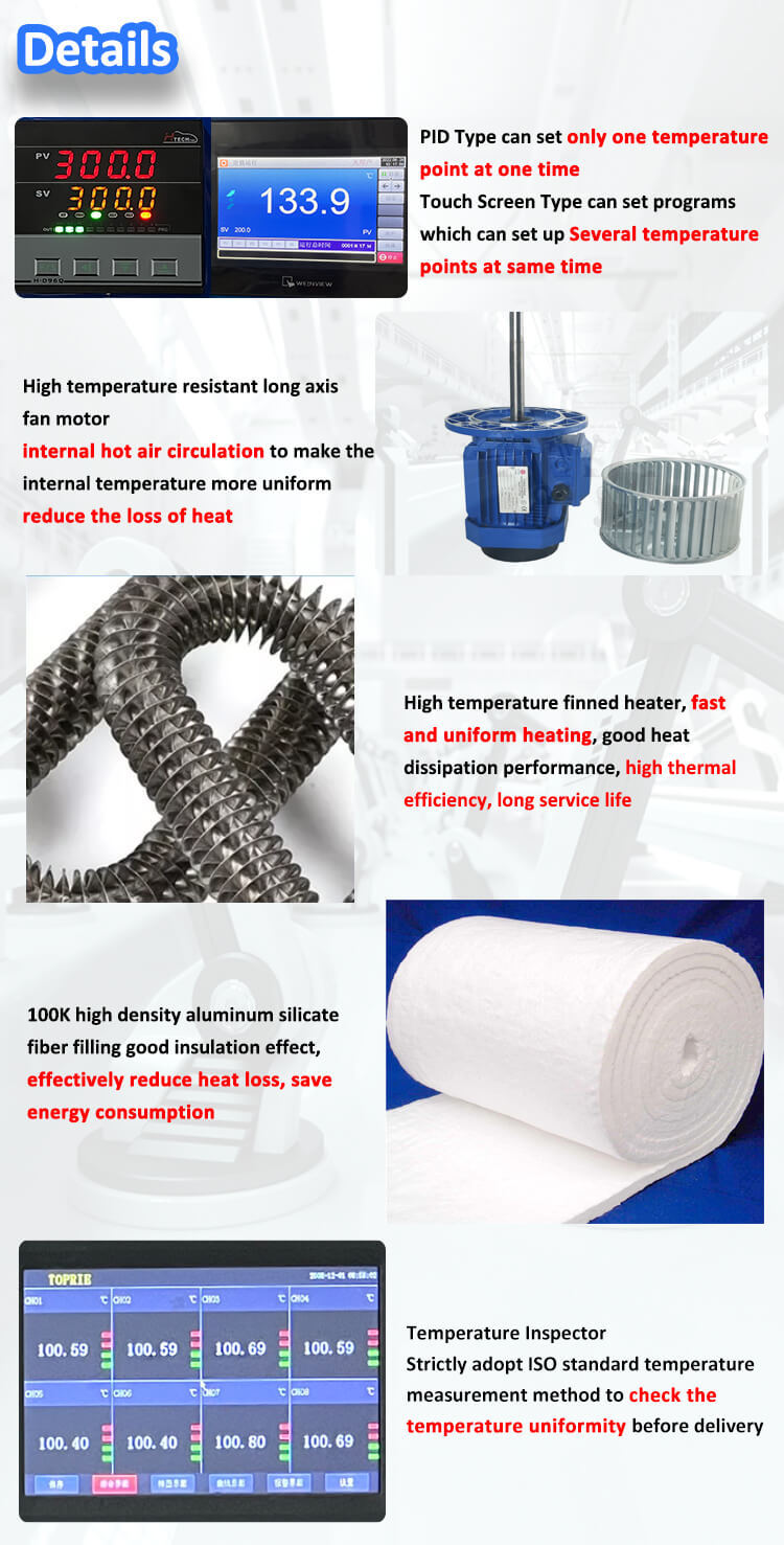 Endüstriyel fırınlarımız, kurutma, sertleştirme, yaşlanma, kızartma ve diğer ısı işlemleri için uygun olan 800°C'ye kadar yüksek sıcaklık uygulamaları için tasarlanmıştır.SUS304 malzemesinden üretilmiş ve elektrikli ısıtma ile donatılmıştır, bu fırınlar 0.3% doğruluk ile hassas sıcaklık kontrolü sunar.